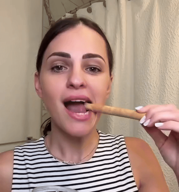 Bite or trim the tip to reveal bristles, then brush using short, gentle strokes — like a toothbrush. Cut and refresh the tip every few days for best results.